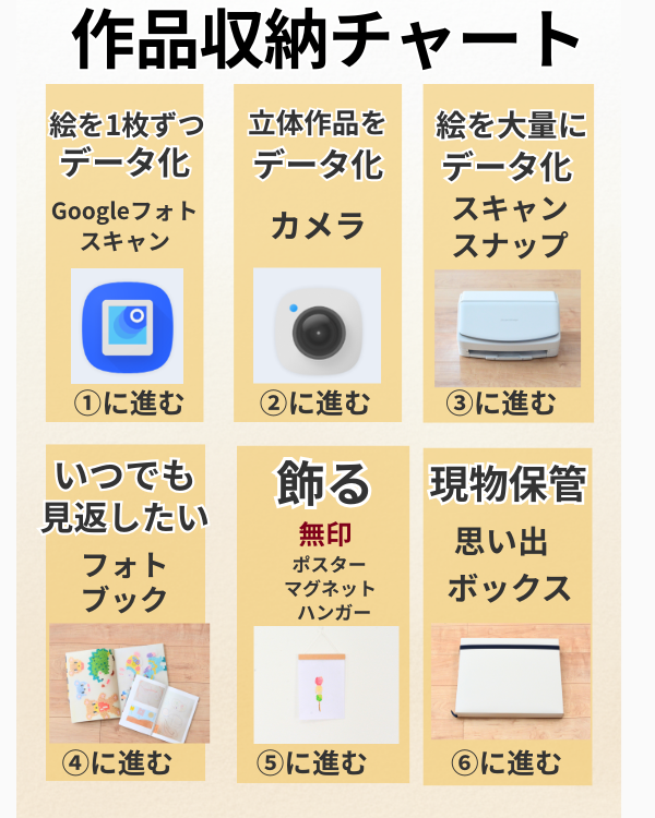 今回は、ライフスタイルや性格に合わせて選べる「子供の作品収納チャート」にまとめました✨